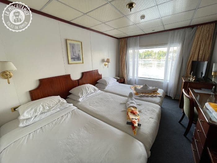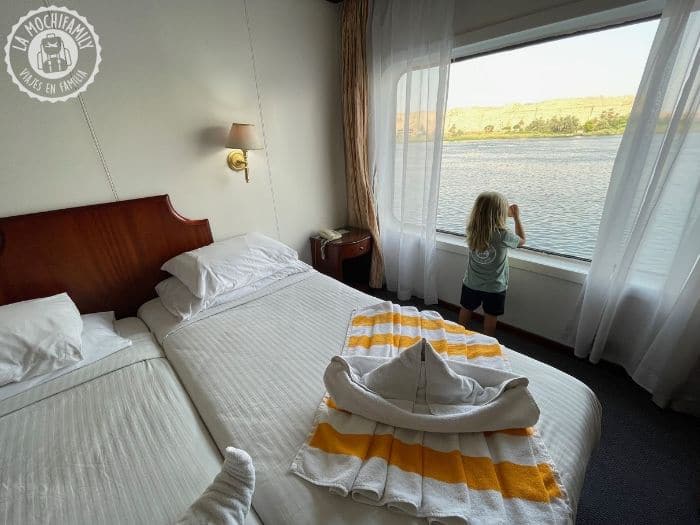 Hacer el crucero por el Nilo con niños es divertido y además es muy cómodo. Tienes todos los traslados incluidos, durante 3-4 días no tienes que preocuparte de buscar dónde comer, dónde cenar, y te olvidas de hacer y deshacer maletas para cambiar de alojamiento. Y eso de no tener que preocuparte por nada, de vez en cuando, pues se agradece y mucho (sobre todo para las familias que viajamos siempre por libre).