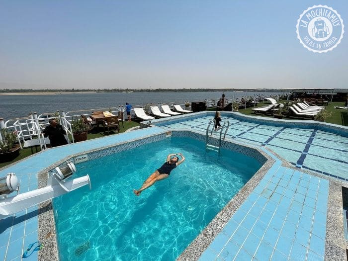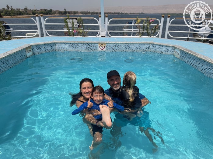 Para nosotros, un viaje a Egipto con niños debe incluir sí o sí la experiencia de un crucero por el Nilo. Dormir en un barco fue una experiencia totalmente nueva y alucinante para los niños. Dormir con vistas al río Nilo, bañarse en la piscina mientras el barco navegaba… Fueron muchas experiencias nuevas para ellos y lo disfrutaron un montón. Ellos recuerdan el crucero por el Nilo como una de las cosas que más les gustó del viaje a Egipto.