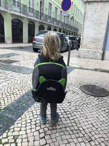 Empezamos a utilizar la Trunki a raíz de un viaje a Portugal en el que nos salía muchísimo más caro alquilar dos sistemas de retención infantil que alquilar el propio coche. Por ese motivo empezamos a investigar sobre los elevadores infantiles de viaje y así fue como dimos con la mochila elevador Trunki.