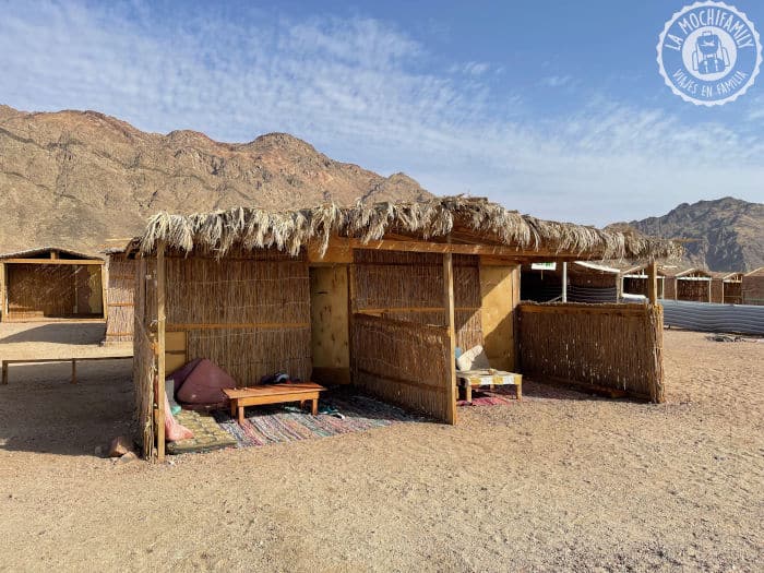 Una vez en Abu Galum, puedes pasar el día y volver a dormir a Dahab, o hacer como nosotros y pasar una noche, o las que quieras, en los campamentos beduinos que hay instalados en la arena a pie de playa. Nosotros pasamos una noche y fue una gran experiencia para todos. Las cabañas son muy muy básicas, cero lujos, los baños son compartidos, pero la calma que se respira en este lugar, sobre todo al atardecer, es pura magia. Si buscas relax, te costará irte de Abu Galum, te lo aseguramos.